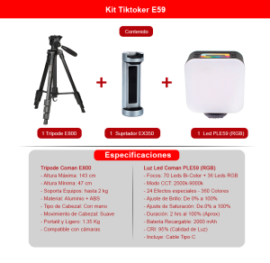 Kit Tiktoker RGB E59 (Trípode + Led)